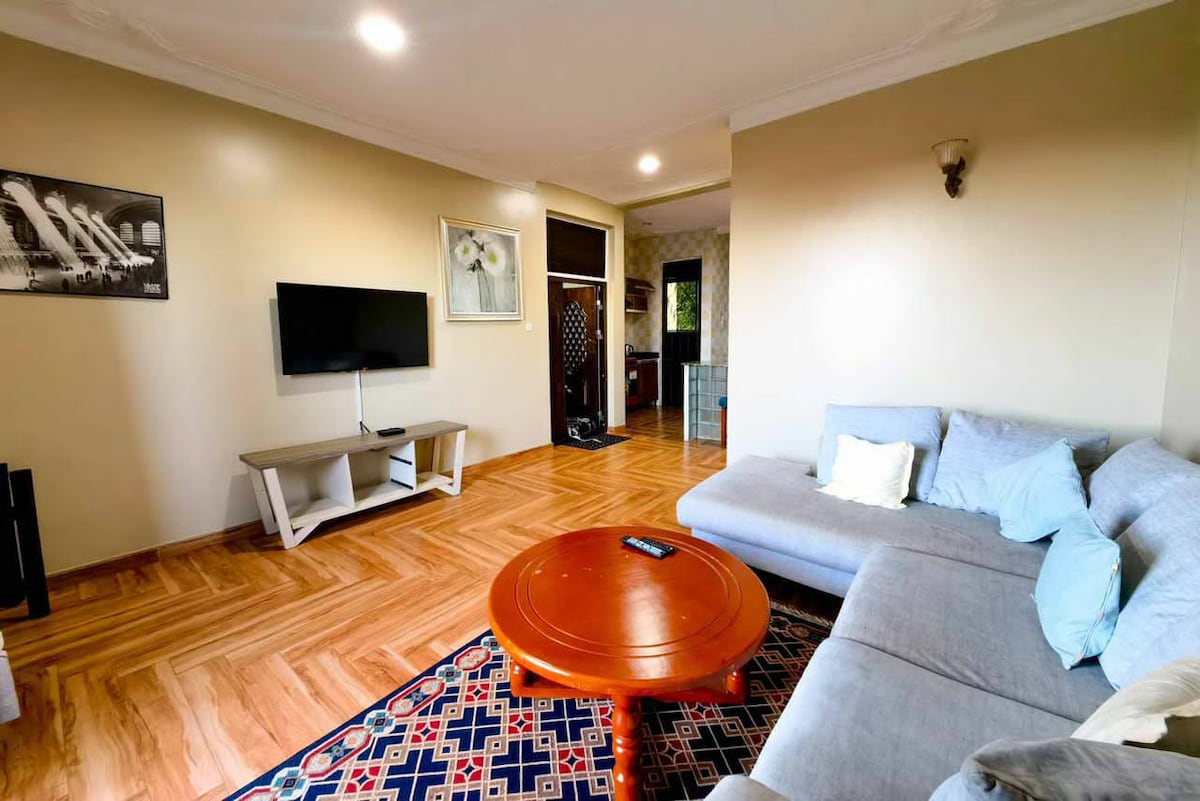 Bienvenido a nuestro espacioso y acogedor apartamento de 2 dormitorios a solo 300 metros de Ggaba Road, a pocos minutos de Speke Resort Munyonyo y el lago Victoria. Relájate en una amplia sala de estar con muebles de madera, una cocina totalmente equipada y un entorno tranquilo. Ideal para familias, parejas o viajeros de negocios. Fácil acceso desde y hacia el aeropuerto de Entebbe a través de la autopista Express. Fácil acceso al centro de la ciudad de Kampala a través de las carreteras de Ggaba, Lukuli y Salaama. ¡Reserva tu estadía y siéntete como en casa en Kampala!