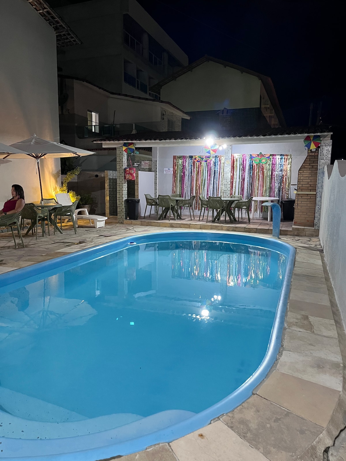 Relájese con toda la familia en este alojamiento. Casa de 2 plantas, planta baja y primer piso. En la planta baja tenemos un dormitorio con baño, sala de estar, cocina, balcón, piscina privada, jardín y plazas de aparcamiento para 2 coches. En el 1º piso tenemos 2 dormitorios, ambos suites. La casa ofrece parrilla, licuadora, sandwichera, estufa, heladera con freezer, termo y todos los utensilios domésticos. El alquiler incluye una limpieza diaria, de 8:00 a 16:00, todos los días. También proporcionamos ropa de cama y toallas.