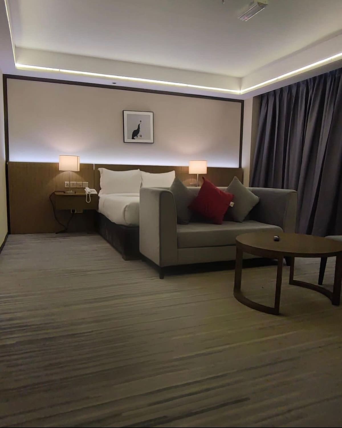 Our comfortable Single Room is ideal for solo travelers, offering a cozy bed, modern furnishings, air conditioning, free Wi-Fi, a flat-screen TV, and a private bathroom. A clean, quiet space perfect for business or leisure, with easy access to nearby shops and restaurants. Kindly be note that, during your stay, there may be sound of music due to private events taking place in the hotel
