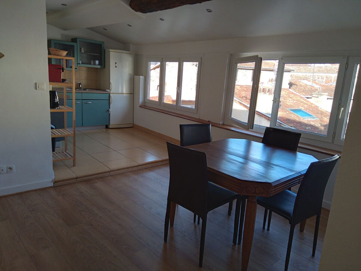 Agradable dúplex de 43 m² con dormitorio en altillo situado cerca del teatro antiguo, a 3 minutos a pie del jardín de Cybèle y a 10 minutos a pie de la estación de tren SNCF Ideal para 2 adultos Barrio auténtico, con espíritu de pueblo Tranquilo, luminoso, tercer y último piso de un pequeño edificio antiguo. El descubrimiento de la ciudad se puede hacer a pie, así como el acceso a las tiendas Estancia turística o profesional