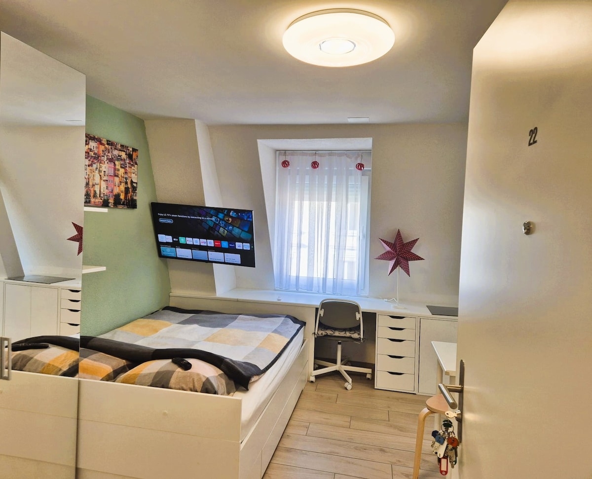 Te damos la bienvenida a Greenspot Apartments y a este departamento tipo estudio, inundado de luz y céntrico, con balcón soleado, home theater y estacionamiento gratuito en el centro de Zúrich, que te ofrece todo lo necesario para una gran estadía en Zúrich: - Llegada fácil, estacionamiento privado, home theater - A 12 minutos a pie de la estación de tren - Check-in las 24 horas - Cocina bien equipada con lavavajillas. -1 dormitorio, sofá cama, 1 baño/ducha - Coche (bajo petición) - WiFi, TV inteligente - Balcón privado con parrilla Weber - Café,té - Quédese más tiempo y seguro