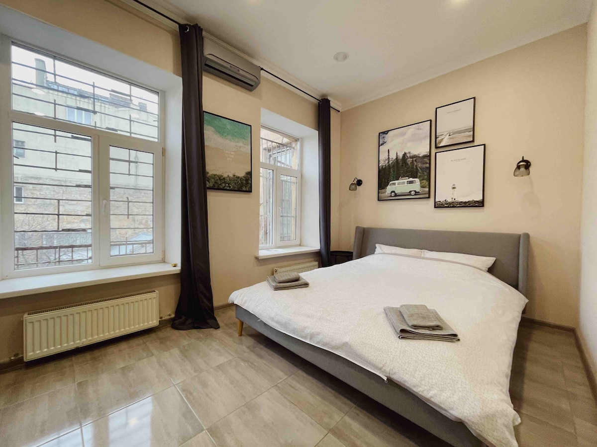 Disfruta de una estancia elegante en el centro de la ciudad en un nuevo apartamento donde encontrarás todo lo necesario para una estancia cómoda con un equipamiento completo y con todas las comodidades del apartamento. La cocina también está equipada con todo lo necesario para cocinar tus platos favoritos. A la vuelta de la esquina se encuentra la calle Deribasovskaya, que es un verdadero paraíso para los amantes de la recreación cultural, las tiendas, las cafeterías y los restaurantes de todos los gustos.