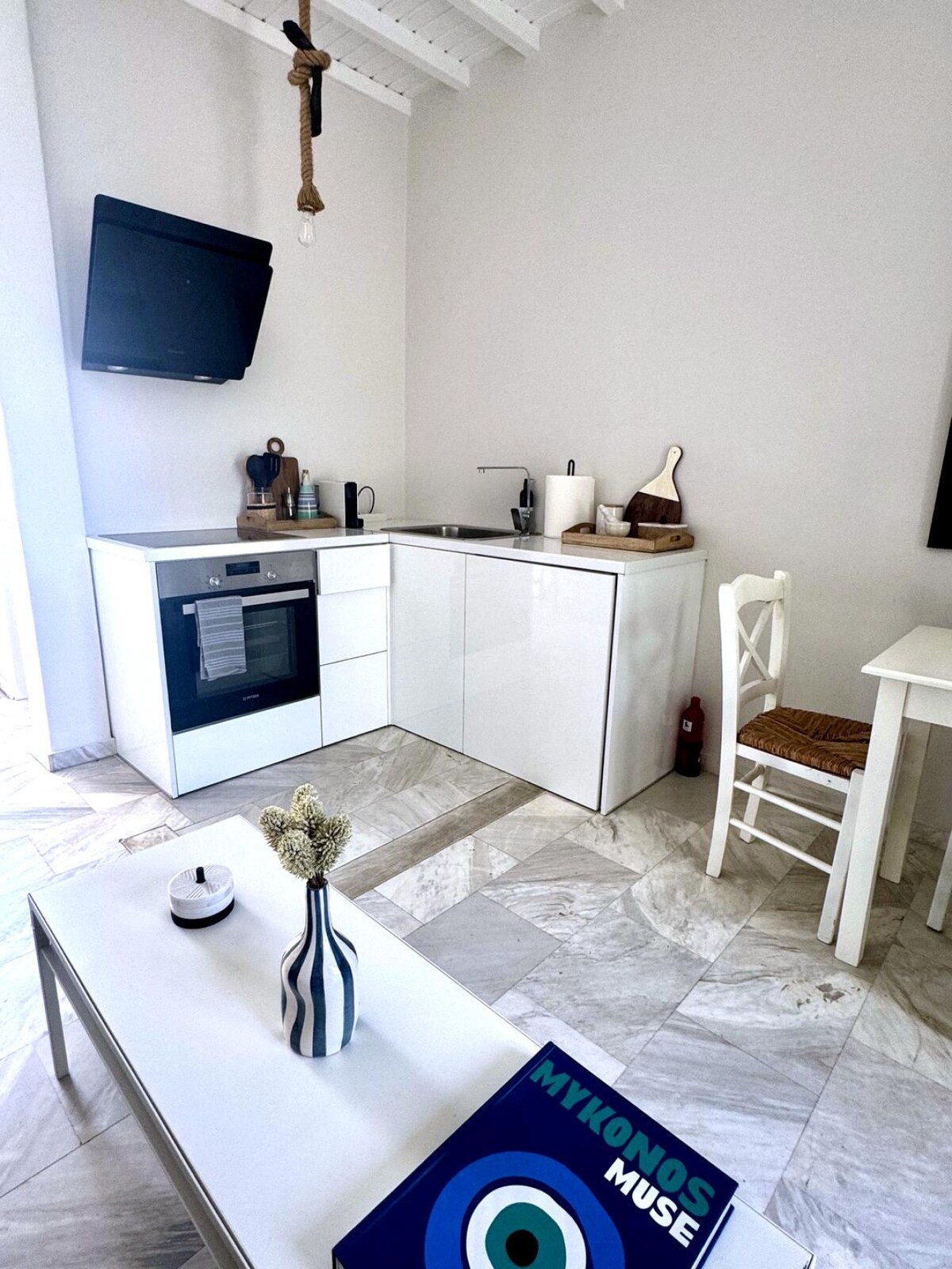 Un pequeño apartamento boutique, situado en el corazón de la ciudad de Miconos, en un complejo tranquilo, a solo dos minutos a pie del famoso centro de la ciudad de Miconos, con restaurantes, tiendas y bares. ¡Con una gran piscina compartida, una cocina totalmente equipada, wifi gratuito, TV LCD y sábanas de marca de alta gama, toallas y mesa de arte!