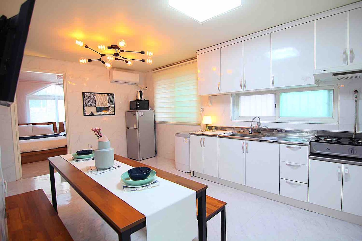 Retiros 🏡urbanos Un espacio curativo < Jamsil Haven > A 10 pasos del piso 1,5. Se proporciona un estacionamiento gratuito en la🚘 propiedad. Se 🕌proporcionan 3 camas tamaño queen estilo hotelero. Instalación de TV inteligente LG de🎆 55 pulgadas 🥂Mesa de madera y sillas para 8 personas. Vajilla para👶 bebés y esterilizador de biberón. Purificador de agua proporcionado 🤱Bebés acompañantes: proporcionamos mantas y almohadas adicionales para que puedas abrir el sofá cama y dormir. [Transporte conveniente] - A 8 minutos caminando desde la estación de Jamsil Saenae (línea 2) - 13 minutos caminando desde el complejo deportivo (línea 2). -8 minutos a pie de la estación de Samjeon (línea n .º 9). 🎡Lotte Tower, Lotte World y Seokchon Lake - A 5 minutos en coche, 1 estación de metro. 🏥Samsung Hospital y Asan Hospital - A unos 13 minutos en coche. Mercado 🌮de Saemaeul -3 minutos a pie Al utilizar el autobús directo 6006🚌 desde el aeropuerto de Incheon, llegarás a la estación de Jamsil Saenae de inmediato. * Este alojamiento está oficialmente registrado como un negocio de alojamiento familiar turístico extranjero. Este anfitrión está registrado para la demostración de alojamiento compartido de WeHome y es legal para hacer reservaciones para nacionales y extranjeros.