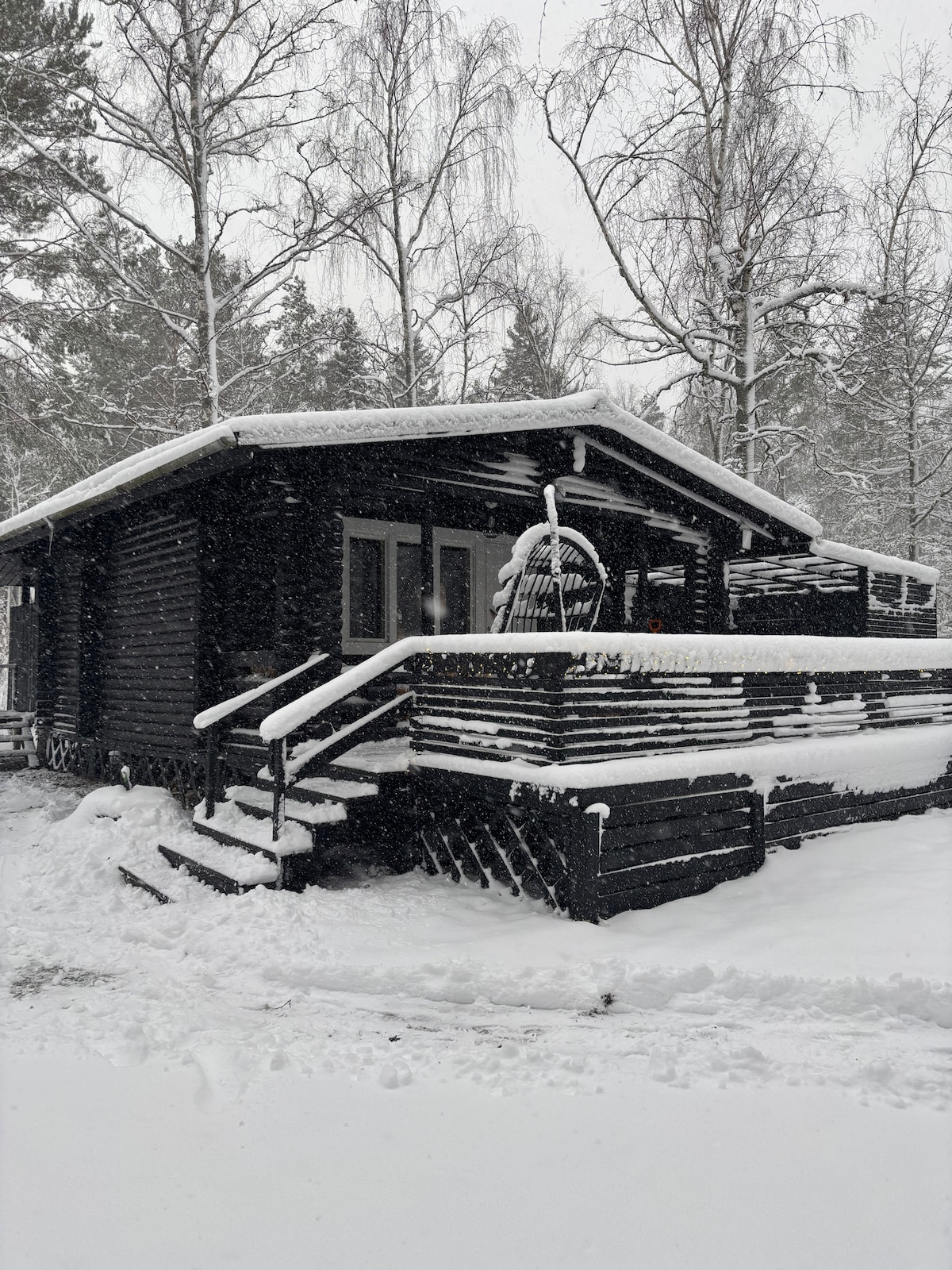 La cabaña está ubicada en un gran lote de 3,5 hectáreas en una zona aislada rodeada de pequeños estanques. Puedes disfrutar del suave calor de la sauna de madera y luego relajarte en el agua tibia del jacuzzi. Al atardecer, puedes ver alces, ciervos y otros animales del bosque pastando en el campo cercano desde la terraza. También puedes dirigirte a los bosques cercanos para recoger setas y bayas y preparar la cena con ellos. ¡Se admiten mascotas pequeñas!