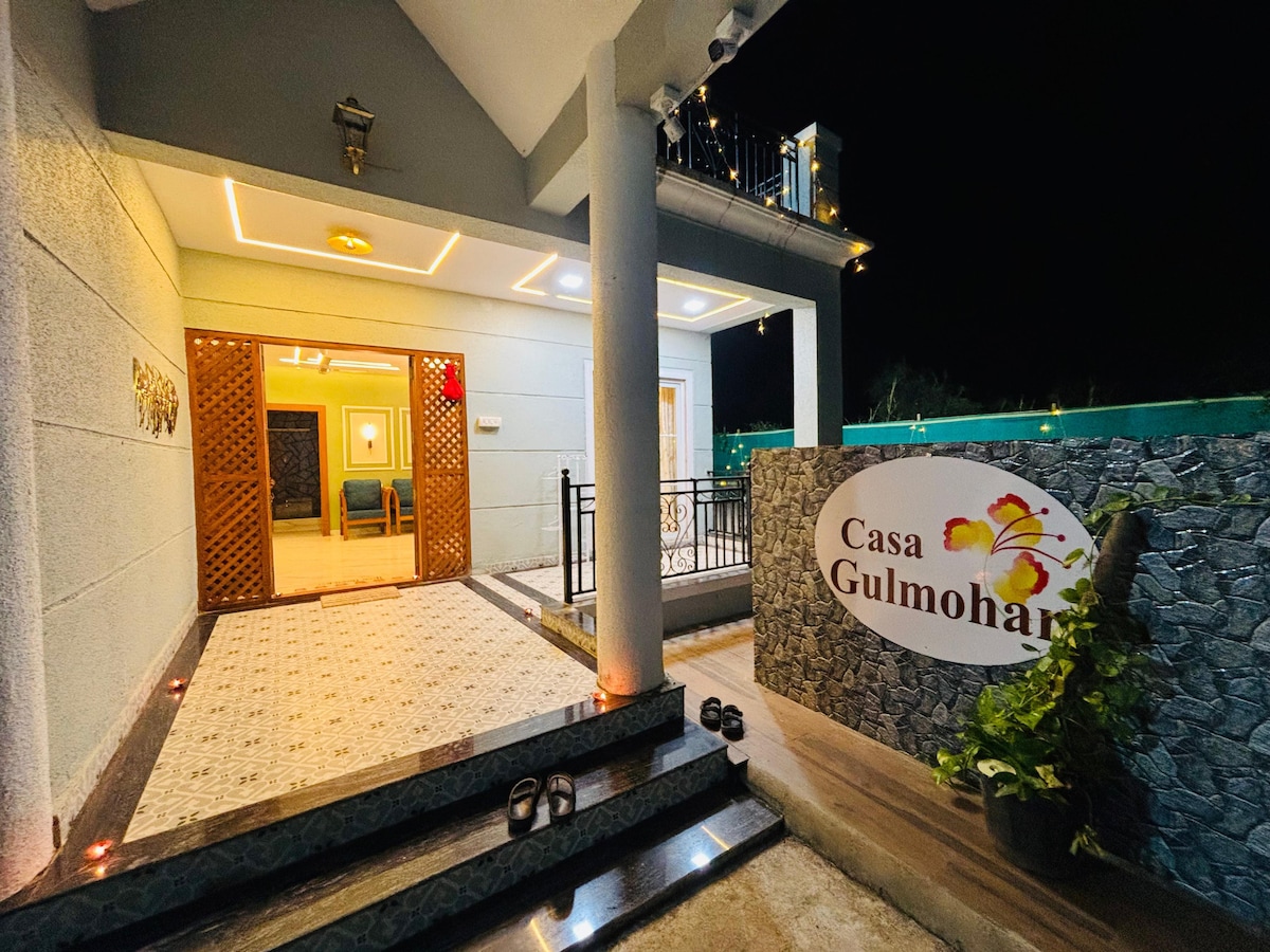 Introducción: “Perfecta para familias, grupos y amigos que buscan una villa privada con servicios de estilo resort a solo 10 minutos en auto de Mandwa Jetty”. Aspectos destacados: pileta privada, chef interno o comida auténtica maharashtriana vegetariana y no vegetariana, personal de servicio de 5 estrellas, asistencia las 24 horas, los 7 días de la semana. Desglose detallado: 4 dormitorios, 4 baños, living, cocina, jardín y kiosko exterior. Atracciones locales: playa de Saswane, deportes de playa en la playa de Awas, muelle de Mandwa, museo Karmarkar, cafés cercanos.