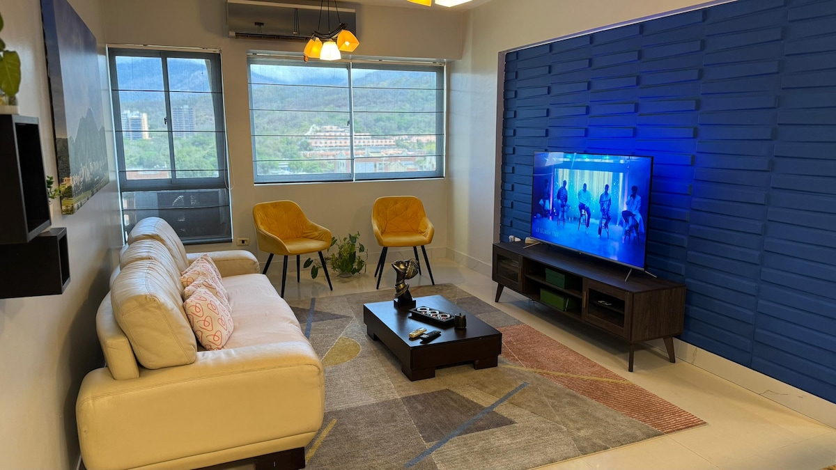 Vive una experiencia de alojamiento con estilo, confort y buen gusto. Este apartamento ha sido diseñado pensando en quienes valoran los detalles, el ambiente y la funcionalidad. Ideal para familias o ejecutivos que buscan un espacio acogedor, moderno y con todas las comodidades para descansar o trabajar desde casa. Desde que entres, notarás el equilibrio perfecto entre diseño y calidez. La sala de estar cuenta con un moderno mueble de entretenimiento y un Smart TV de 55”