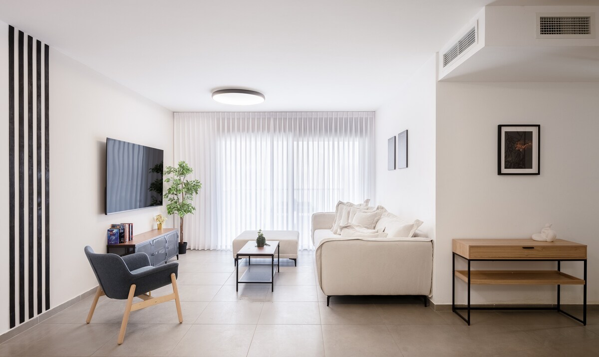 A breath taking view of the sea and woods . private parking . quiet ! has a safe zone. inner flat far from the main road .close to university. yet central 150 m on foot from the center: everything you need supermarket open 24 h .coffee shops. bars.bakeries.bus station.5 km from the beach. 1 km from the road to Tel Aviv and train well equip.very good neighborhood!! you can walk at night without fear! NOT like other listings shown as similar to mine! and are located in not good neighborhoods!!