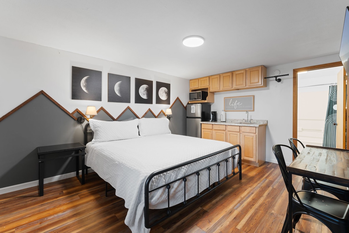 ¡Ven a disfrutar de una pequeña ciudad de Estados Unidos en las montañas Smoky! La suite Mitchell es una de las dos habitaciones ubicadas encima de La Dolce Vita Bakery & Coffee Roaster, enfrente del ferrocarril Great Smoky Mountain y en el corazón de la histórica ciudad de Bryson. Puedes ir andando a cenar y comprar, descansar en el porche con vistas a la plataforma giratoria de GSMR o explorar al aire libre. La suite Mitchell tiene capacidad para cuatro adultos. ¡Disfruta de un panecillo recién horneado y café tostado en casa como parte de tu estancia!