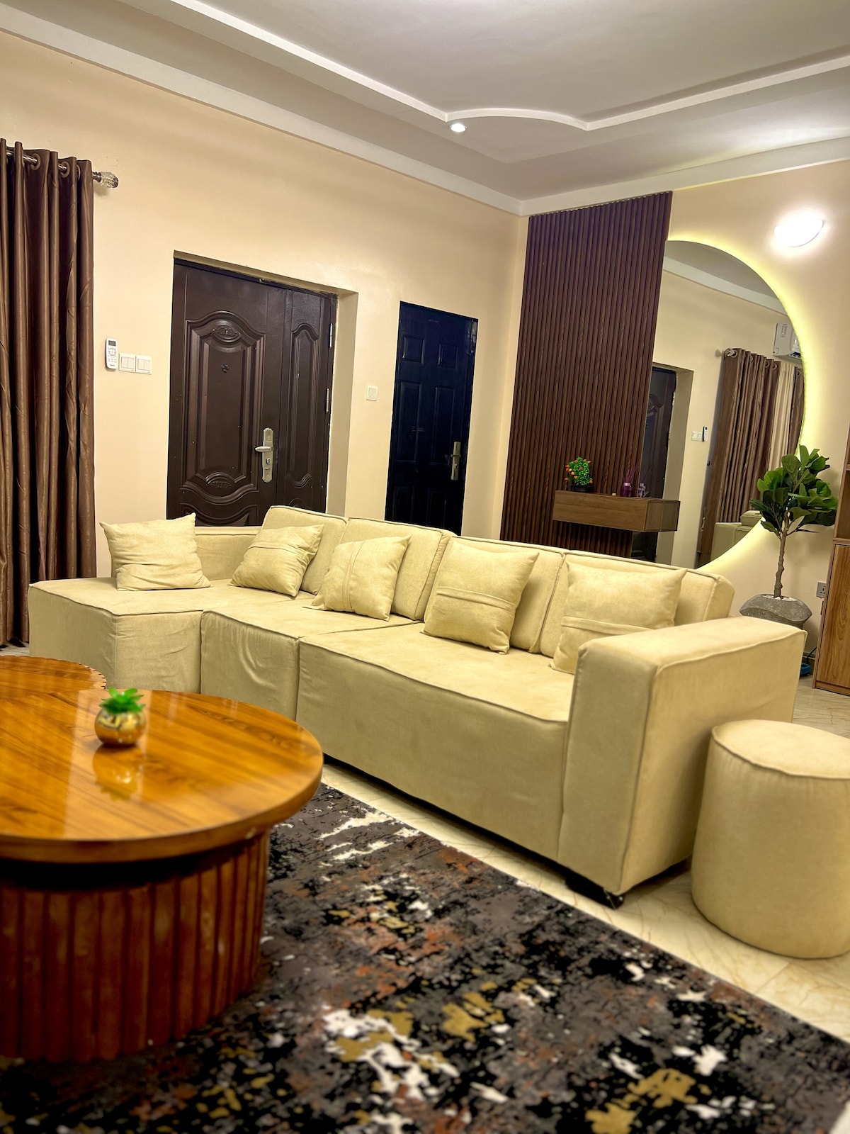 Relájate con toda la familia en este alojamiento único, elegante y tranquilo con energía solar las 24 horas, los 7 días de la semana. Nota: Asegúrate de usar la propiedad con cuidado y complaciente con las reglas de la casa El alojamiento está a pocos minutos de los principales centros de la ciudad y de todos los servicios. Este departamento de 2 dormitorios, apto para viajeros y huéspedes, está ubicado en un entorno sereno y vigilado en "Da Saski Condominium" en Katampe, Abuja, y está equipado con la mayoría de las comodidades para que tu estancia sea cómoda.