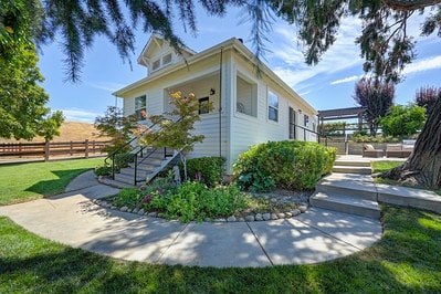 The Story Vineyard Homestead Home, Artistic Beauty in Historic Hills of Amador County. This 90 year old ranch house has been recently lovingly restored and is a gorgeous, intimate gem located in the heart of Gold Country. It is situated in a field overlooking 45 acres of vineyards, 4 miles outside of Plymouth, CA, on Highway 49, between Placerville and Jackson. The exposed beams and wood floors of this charming 2 bedroom, 2 bath house, make the framework for a perfect creative get-a-way.