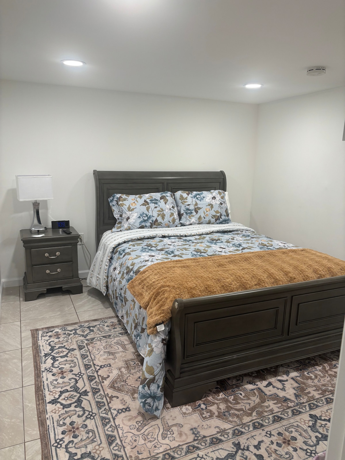 Suite privada recientemente renovada ubicada en el sótano con entrada privada y baño. La cama tamaño king tiene capacidad para 2 personas. Lámparas inteligentes y sillón reclinable de sofá eléctrico para mayor comodidad. Área de refrigerio ligero con microondas, nevera, mini tostadora, hervidor eléctrico y Keurig. Cerca del hospital Northwell y a 20 minutos a pie de la estación de tren LIRR. A 10 minutos en auto de todos los supermercados, tiendas, biblioteca y Stepping Stone Park. El anfitrión es muy alérgico a gatos y perros. ¡No se permiten mascotas!