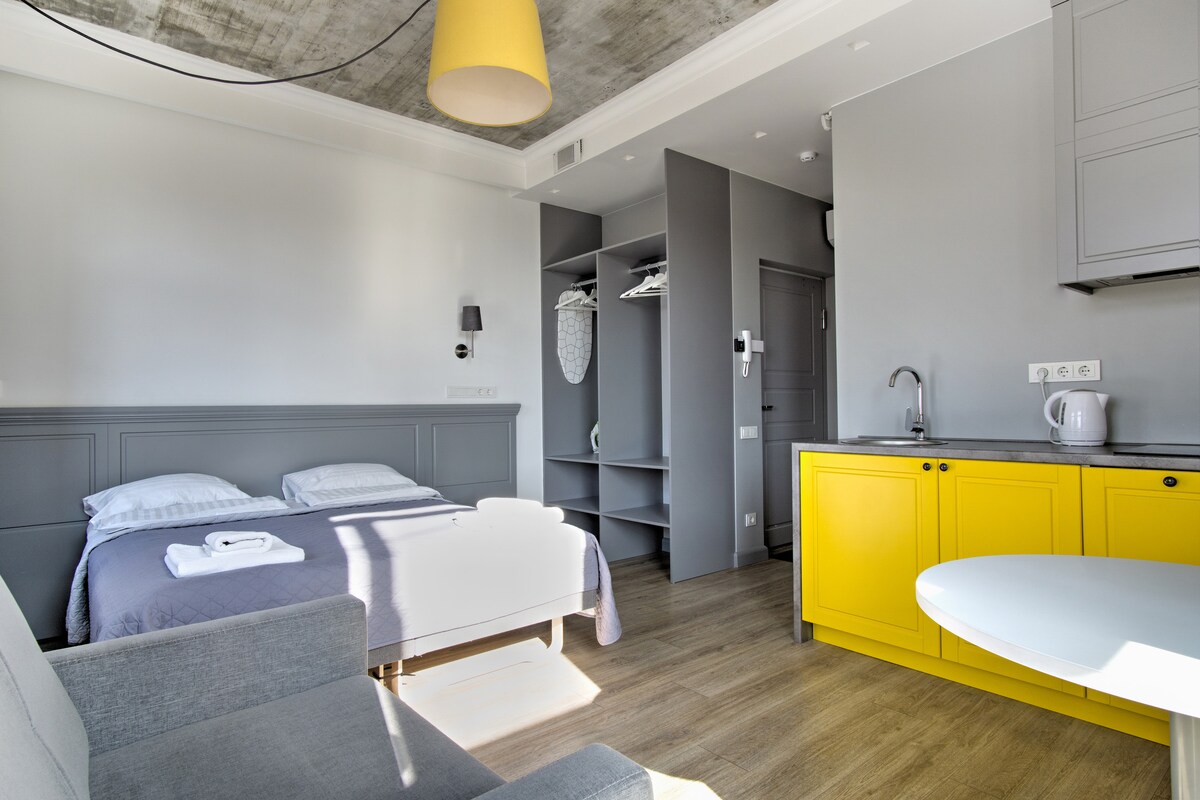 El tiempo y el silencio son las cosas más lujosas hoy en día. Estudio Time and Silence de Place No. 2 hecho para parejas. Es nuevo, moderno, lleno de buen gusto y sueños. Es un lugar perfecto para pasar unos días. Estudio situado en la zona de Piromont, que es un conjunto único de edificios del siglo XIX, rodeado de modernos centros de negocios, restaurantes y hoteles. Plaza de la catedral a solo 10 minutos a pie.