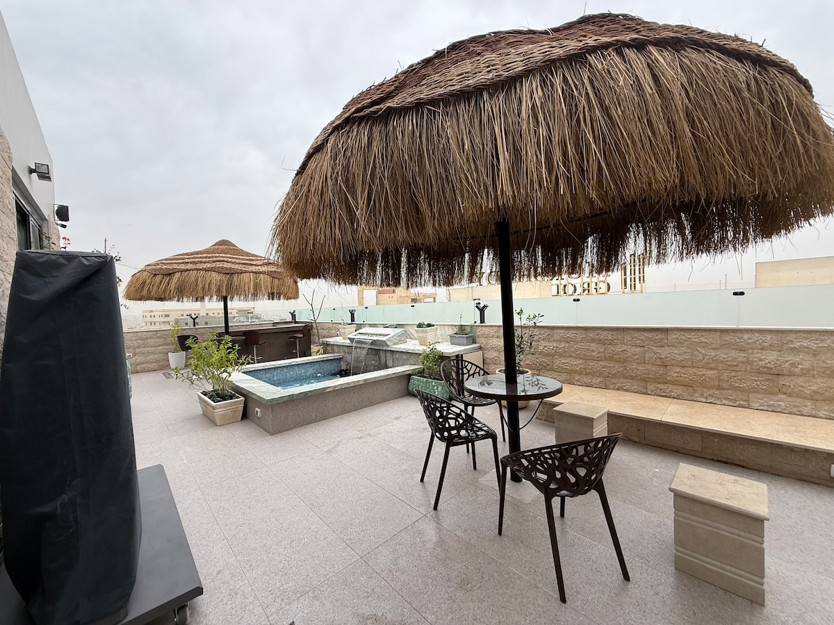 � وصف الشقة: 🛋️ غرفة المعيشة تجربة فندقية فاخرة بلمسة منزلية راقية! استمتع بأجواء راقية تجمع بين الفخامة والراحة، حيث تتميز غرفة المعيشة بتصميم عصري أنيق ومساحة واسعة بعناية. تضم منطقة جلوس مريحة مثالية للاسترخاء، وجهاز PS4 للترفيه. ولعشّاق المشاهدة، ستستمتع بـ تلفزيون OLED سينمائي فاخر مقاس 75 بوصة مع جودة صورة مذهلة، إلى جانب إنترنت فائق السرعة لتجربة ترفيه متكاملة تناسب الإقامات القصيرة والطويلة 🍸 المطبخ: مفتوح على غرفة المعيشة بأسلوب أنيق، ومزوّد بـ كراسي بار فاخرة تضيف لمسة جمالية راقية.
