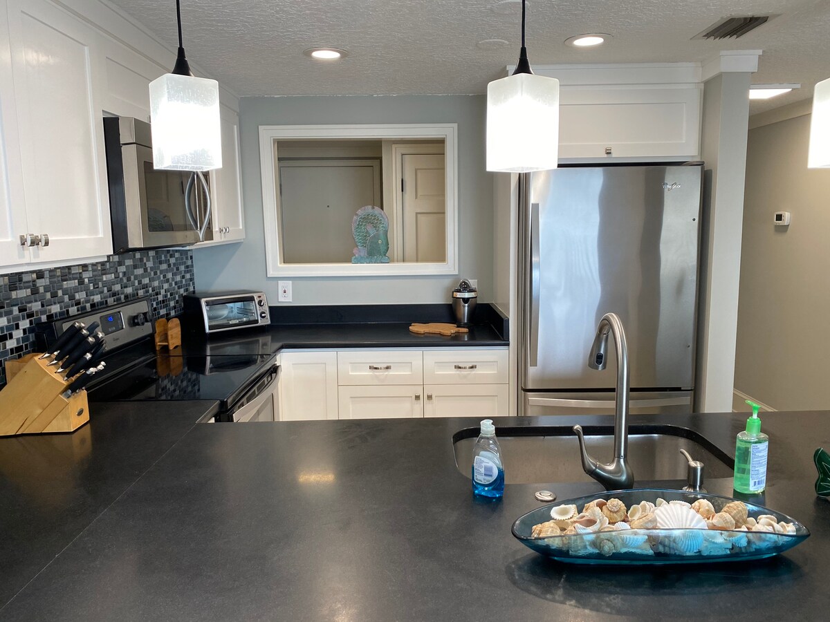 ¡FRENTE AL MAR con una vista de un millón de dólares! La unidad tiene 2 camas/1 baño, configurada como un gran estudio (850 pies cuadrados). Wifi con Smart TV de 65”, espacio de trabajo con una vista fabulosa. El dormitorio separado tiene una cómoda cama tamaño queen y TV. Solárium cerrado con una vista increíble de la playa. La cocina está equipada con elementos básicos de cocina. También se incluyen toallas de playa, sillas y sombrilla de playa. Lavadora/Secadora en el alojamiento. Cómodo, de 5 a 10 minutos en auto hasta Mayo Clinic.