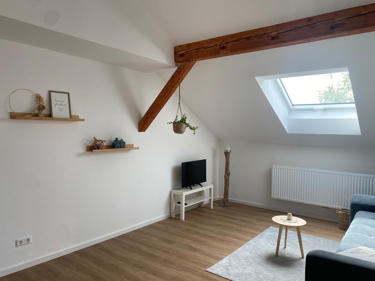 Kleine, aber feine Einliegerwohnung in einem Einfamilienhaus mit separatem Eingang. Direkte Umgebung ist Neubaugebiet (Ein- und Mehrfamilienhäuser). Der Preis variiert nach Gästeanzahl. Er gilt nur für die bei der Buchung angegebenen Gäste! Lebensmittelgeschäfte (Aldi, Kaufmarkt, dm je 500m), das historische Stadtzentrum (Nikolaikirche 800m) aber auch die umliegende Natur sind prinzipiell fußläufig erreichbar. Stellplatz, WiFi inklusive. Die Kurtaxe wird nach Buchung berechnet vor Ort erhoben.