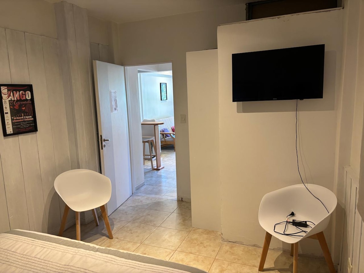 Céntrico mono ambiente de diseño , nuevo , de 32 m2 con muebles funcionales, cama matrimonial de 1,60 x 1,90, baño completo con cabina y doble ducha. Totalmente equipado con vajilla, licuadora, juguera, pava y tostadora eléctrica, heladera con freezer , cocina y anafe a gas , microondas, campana purificadora. Smart TV full HD 43" : Netflix, WiFi, Calefacción por radiadores agua caliente por caldera, portero eléctrico, Area común: Lava- secarropas (sin costo)y sector de parrilla al aire libre