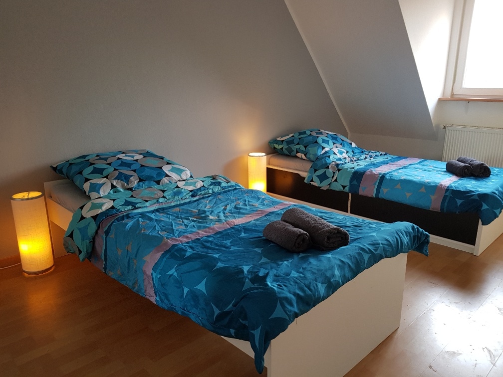 Este espacioso apartamento de 2 dormitorios está situado entre el Messe / Arena y el aeropuerto en una zona residencial tranquila. Se puede llegar a ambos en pocos minutos en autobús o a pie. El metro cercano te lleva rápida y fácilmente al casco antiguo o a la estación de tren principal. A pesar de la ubicación céntrica, puedes disfrutar de la paz y tranquilidad después de tu cita de negocios. Hay un servicio de desayuno disponible, el café y el té siempre están disponibles. El wifi también está incluido.