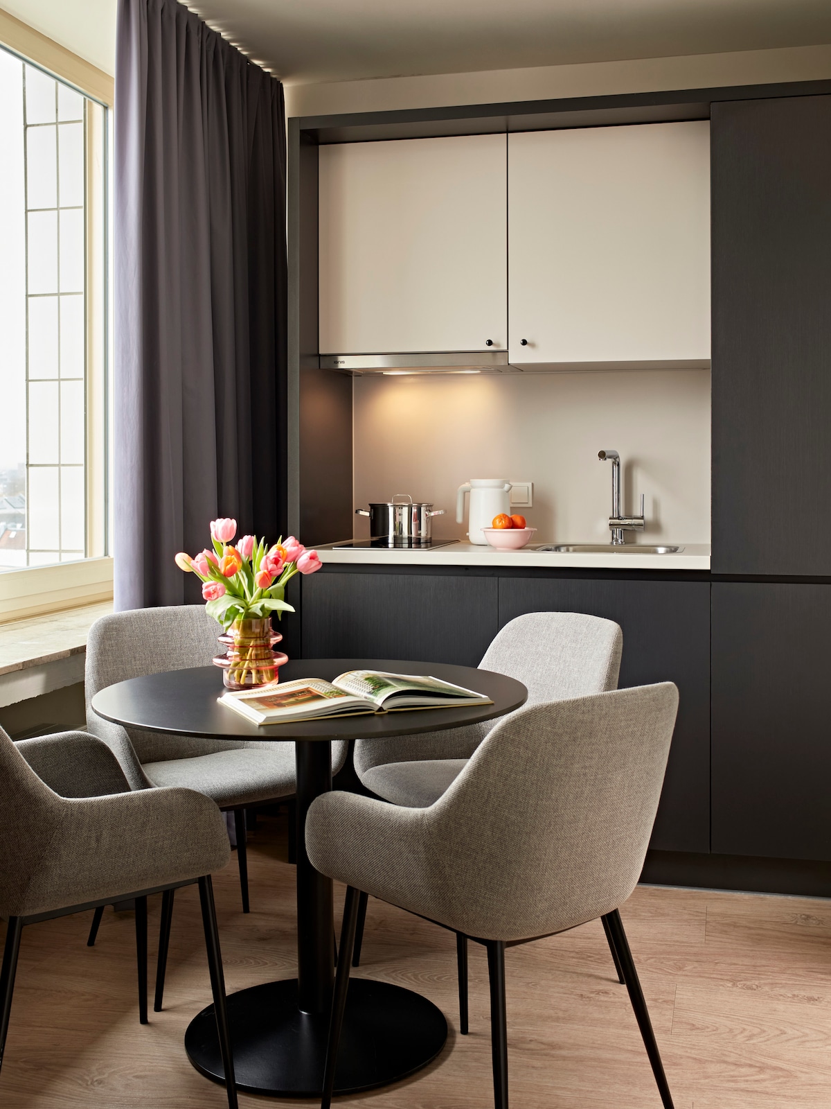 En nuestros estudios inteligentes y de diseño moderno con comodidades funcionales, encontrarás la máxima comodidad en tus cuatro paredes privadas. Nuestras áreas comunitarias como el área de coworking, el gimnasio, la cocina comunitaria y más, cubren todas las demás necesidades de la vida moderna. Ya sea corta o Longstay, servicio completo o sin servicio, así que la habitación ofrece la máxima flexibilidad y la libertad individual de diseño. Todo lo que necesitas, además de todo lo que quieres tener.