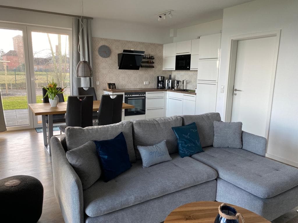 Su apartamento de 80 metros cuadrados tiene una sala de estar luminosa con cocina abierta, dos dormitorios y un baño con ducha y bañera. El apartamento está situado en el centro del paseo marítimo y desde el balcón se puede disfrutar de una vista fantástica del puerto y el castillo, al que se puede llegar en pocos minutos a pie. El cercano centro de la ciudad ofrece teatros, museos y muchos establecimientos gastronómicos. Su coche se puede aparcar en el garaje subterráneo a petición. Heike y Dirk esperan su visita.