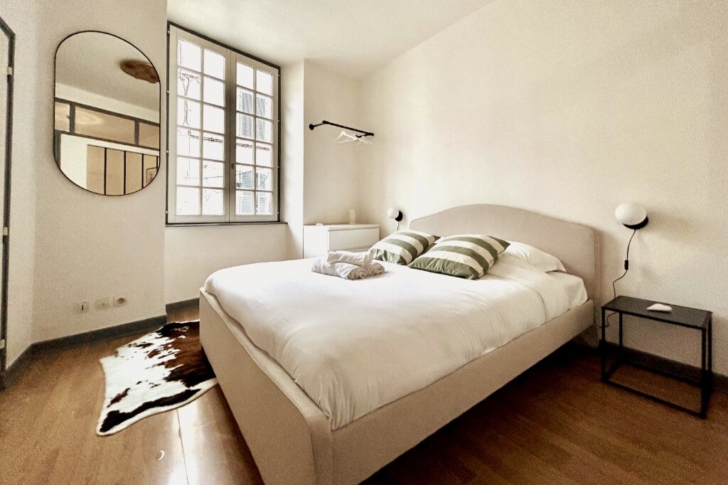 muy bonito apartamento de 2 habitaciones reformado en la planta baja de un pequeño edificio de 3 plantas. Está en el corazón del barrio histórico de los alfareros de Nevers, a 20 metros de la plaza Mossé, a 50 metros del Loira y sus playas, a menos de 500 metros de la estación de tren, las escuelas, el mercado, el palacio Ducal, la catedral y todas las comodidades.