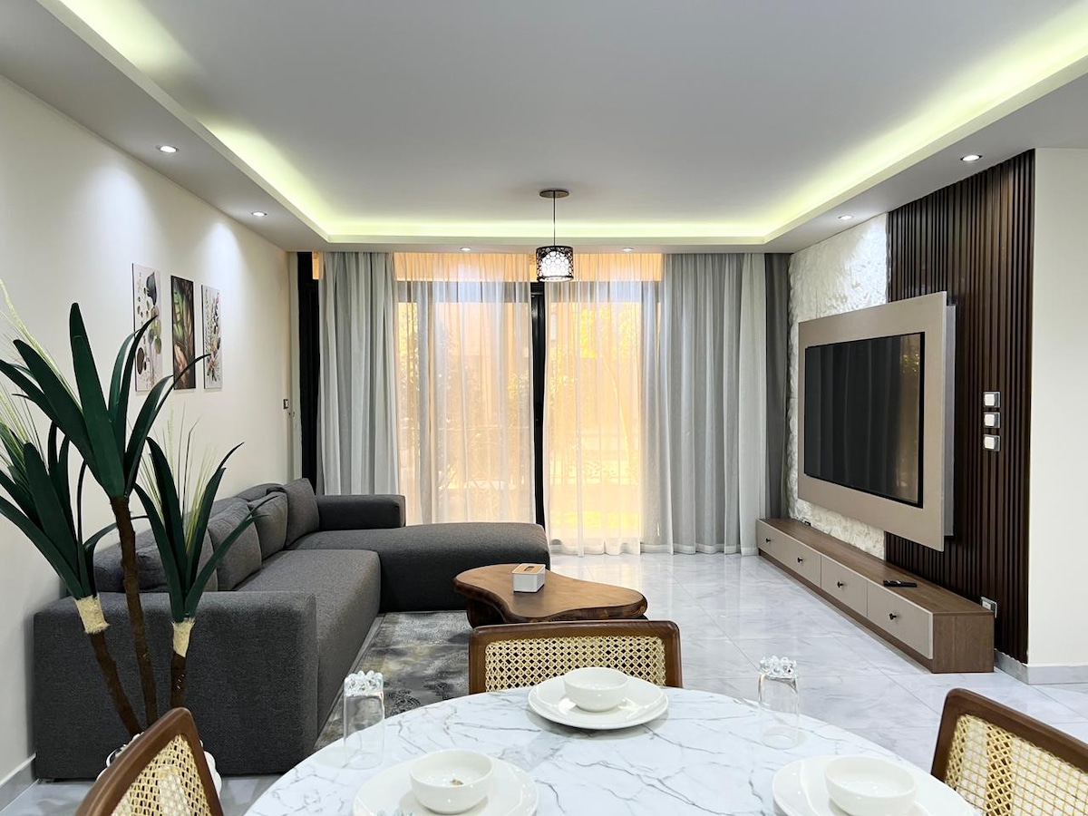 Modern two-bedroom apartment featuring two bathrooms, a fully equipped kitchen, a bright reception area, and a private balcony. Perfect for short or long stays, offering comfort and convenience in a stylish setting. Ideal for families, couples, or business travelers looking for a cozy home away from home.
