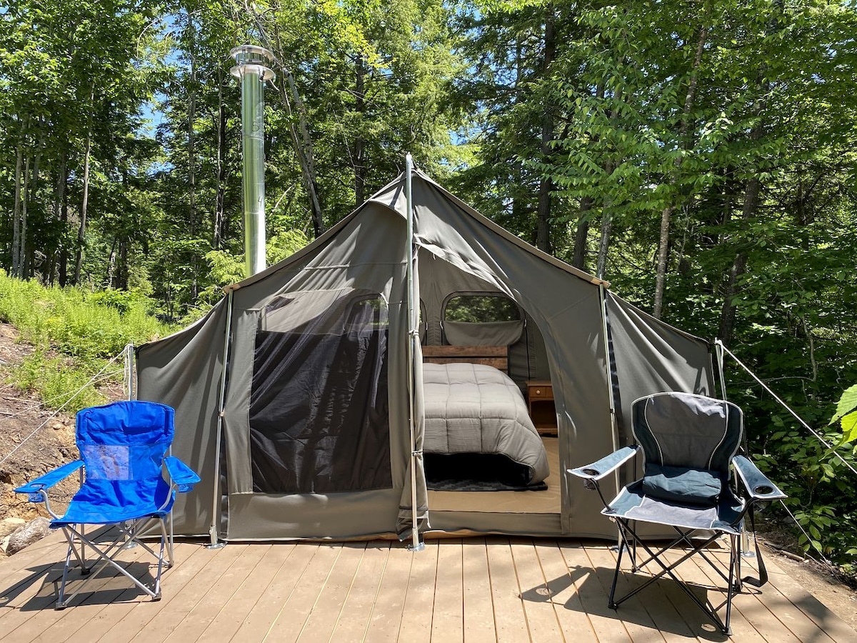 Ofrecemos una hermosa y CÓMODA opción para acampar. ¡Nuestra tienda de campaña fuera de la red viene con todas las comodidades de casa, incluida una estufa de leña y un rincón de lectura! Está enclavado en un bosque de cicuta con vistas al activo estanque de castores. Senderos para caminar y actividades locales a tiro de piedra. Si tienes un bote pequeño o kayaks, ¡TRÁELOS! Tenemos espacio en el patio y muchos lugares locales para enviarte para obtener un buen uso de ellos. Por favor, no lo utilices en nuestro estanque. Tenemos un barco disponible para tu uso.