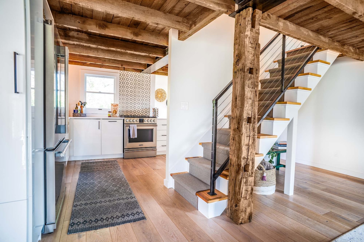 Casa nueva construida a medida única construida a propósito para las misiones de Airbnb. Esta casa ofrece un diseño distintivo con un gran dormitorio loft y un baño totalmente revestido de azulejos. El loft tiene vistas a la sala de estar de la planta baja, que tiene una sala de estar abierta, comedor y cocina. El segundo dormitorio y el baño se encuentran en el primer piso. El granito, la pizarra y la piedra de jabón acentúan las encimeras, los tocadores y los pisos. También verás un montón de pino natural, nogal y cedro local en toda la casa.