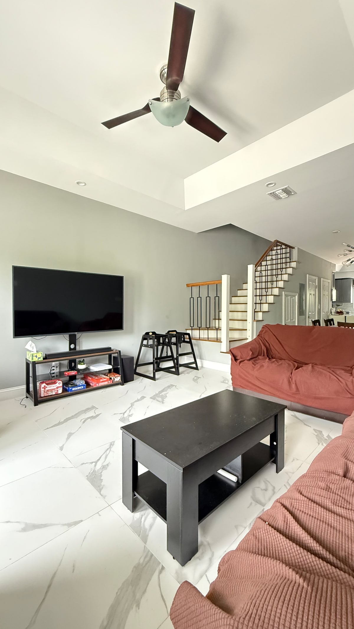 Relajate en nuestra escapada a la isla en el complejo cerrado Jacaranda Estates. Esta casa adosada de 2 dormitorios y 2,5 baños ofrece un refugio tranquilo con techos altos, un diseño abierto y un televisor inteligente de 65". Cada dormitorio tiene un baño privado, además de un tocador y una lavandería en la planta baja. Disfrutá de aire acondicionado central, ventiladores de techo, una bañera de hidromasaje en el dormitorio principal y una piscina compartida en el patio trasero con parrilla, juego de lanzamiento de sacos y sillas de descanso. A solo 7 minutos del aeropuerto y a 3 minutos de tiendas y restaurantes, todo lo que necesitás para una estadía relajante.