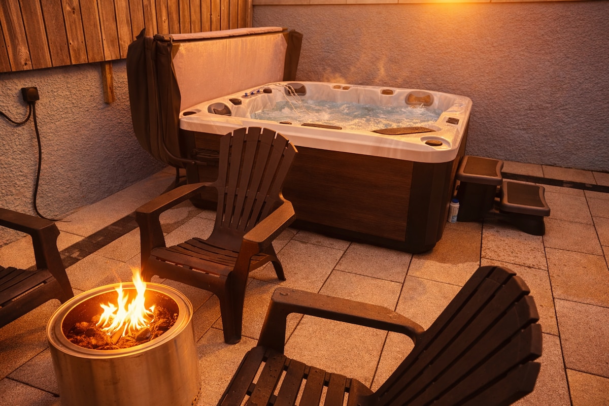 Cabaña: jacuzzi y vistas a la montaña