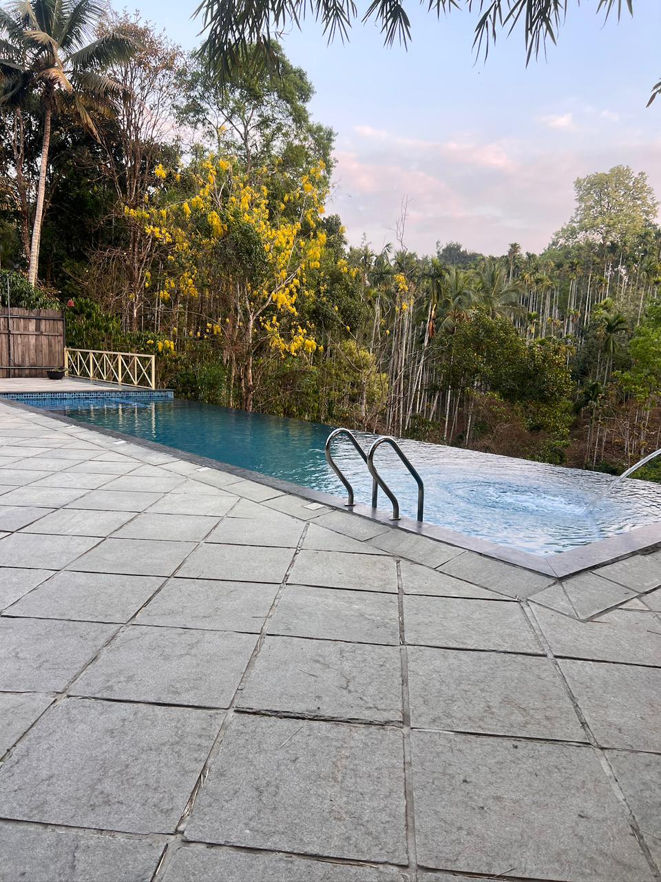 Manayath Resort with Pool in Sulthan Bathery, Wayanad offers five private AC cottages with attached washrooms, premium interiors, and modern amenities for a comfortable stay. Guests enjoy a swimming pool and a dedicated kids’ play area. Located in a serene peacock valley, many mornings begin with the beautiful sight of peacocks visiting right outside the cottages, creating a truly unique and memorable nature experience.