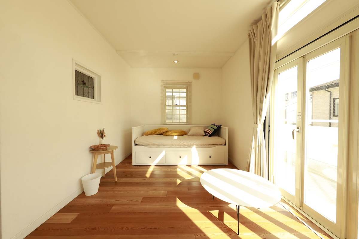 木の温もりと陽光の一軒家|横田基地近く|一棟貸切|最大6名|2トイレ・乾燥機|牛浜駅6分・無料P