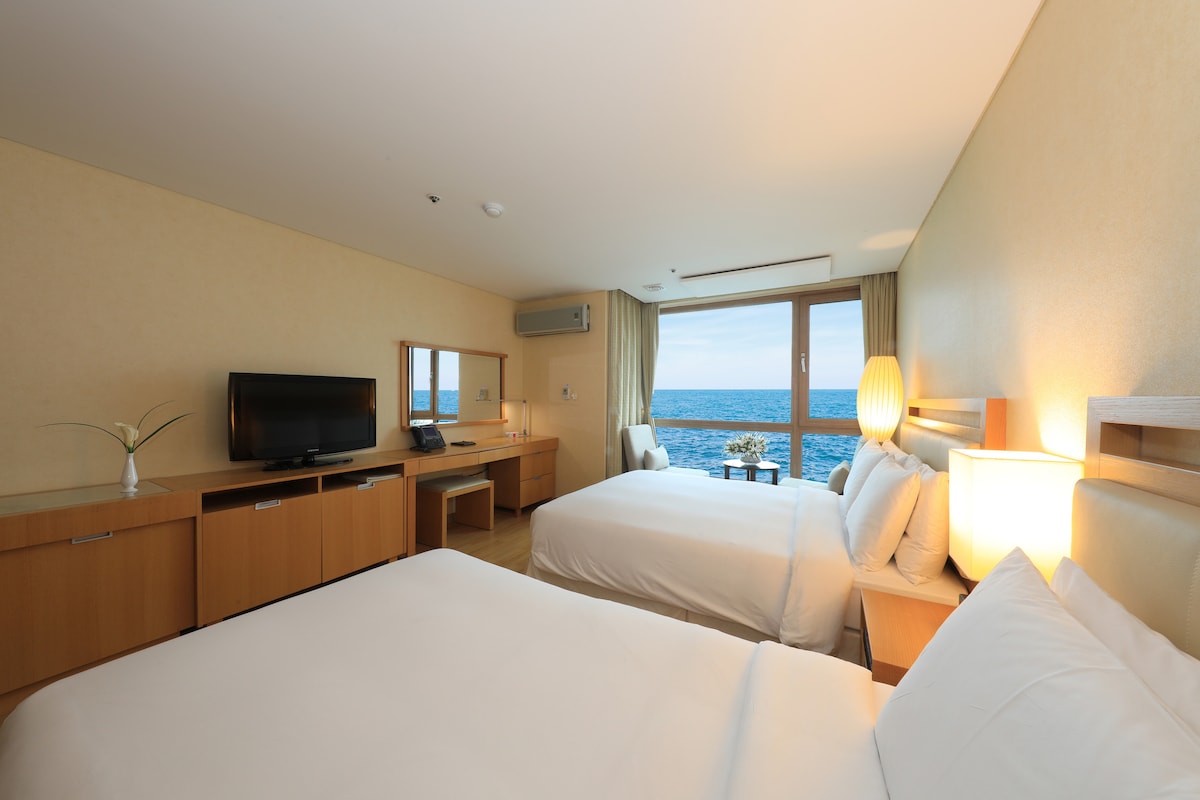 Located only 10 minutes away from Jeju International Airport and Jeju Port, Ocean Suites Jeju Hotel sits by the spectacular coast of Jeju. Its strategic location makes it easy for our guests to enjoy the traditional culture of Jeju, cultural facilities (such as the beach concert hall), tourist facilities and leisure.
