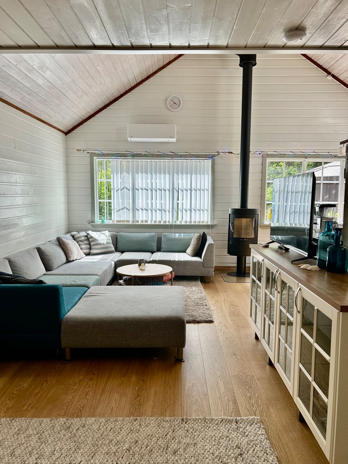 Bonita casa de campo en una parcela grande, cálida y apta para niños con sol todo el día. La cabaña está reformada sustancialmente los últimos años, con cocina nueva, baños más nuevos y dormitorios luminosos y acogedores. Hay tres dormitorios en la cabaña principal y un anexo con cuatro camas, así como un inodoro privado. La cabaña tiene un gran porche con varias zonas de estar. Por supuesto, es agradable estar aquí en verano, pero la cabaña está bien aislada, con leña quema además de una nueva bomba de calor. Por lo tanto, también es una opción perfecta para el otoño y el invierno.