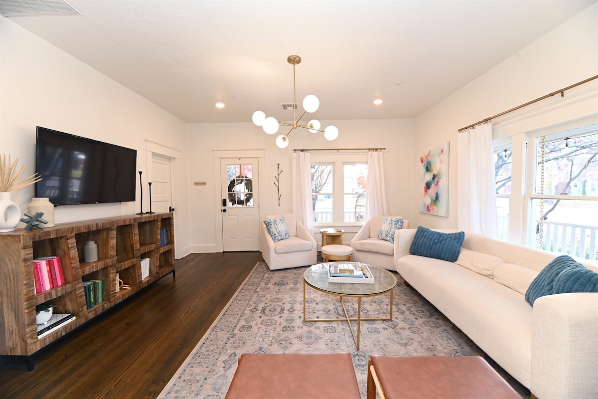 Diseñado para tener todos los extras de un buen hotel, pero con la sensación y el espacio de una casa. ¡Este es tu lugar para ser acogedor, relajarse y disfrutar! Ubicada en una esquina de un vecindario apto para familias, esta casa tiene cocina completa, dos patios y un patio trasero completamente cerrado. La fogata y los s'mores de cortesía también son tuyos, en este encantador y cómodo hogar.