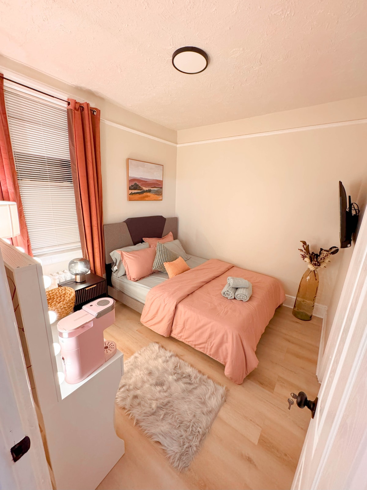 ✨Elegante habitación privada a 25 minutos de Manhattan✨ ¡Relájate en este dormitorio privado recién renovado y acogedor ideal para personas que viajan solas o parejas! Disfruta de una cocina y baño compartidos totalmente equipados, vistas panorámicas de Nueva York y fácil acceso a Manhattan las 24 horas, los 7 días de la semana en autobús directo.