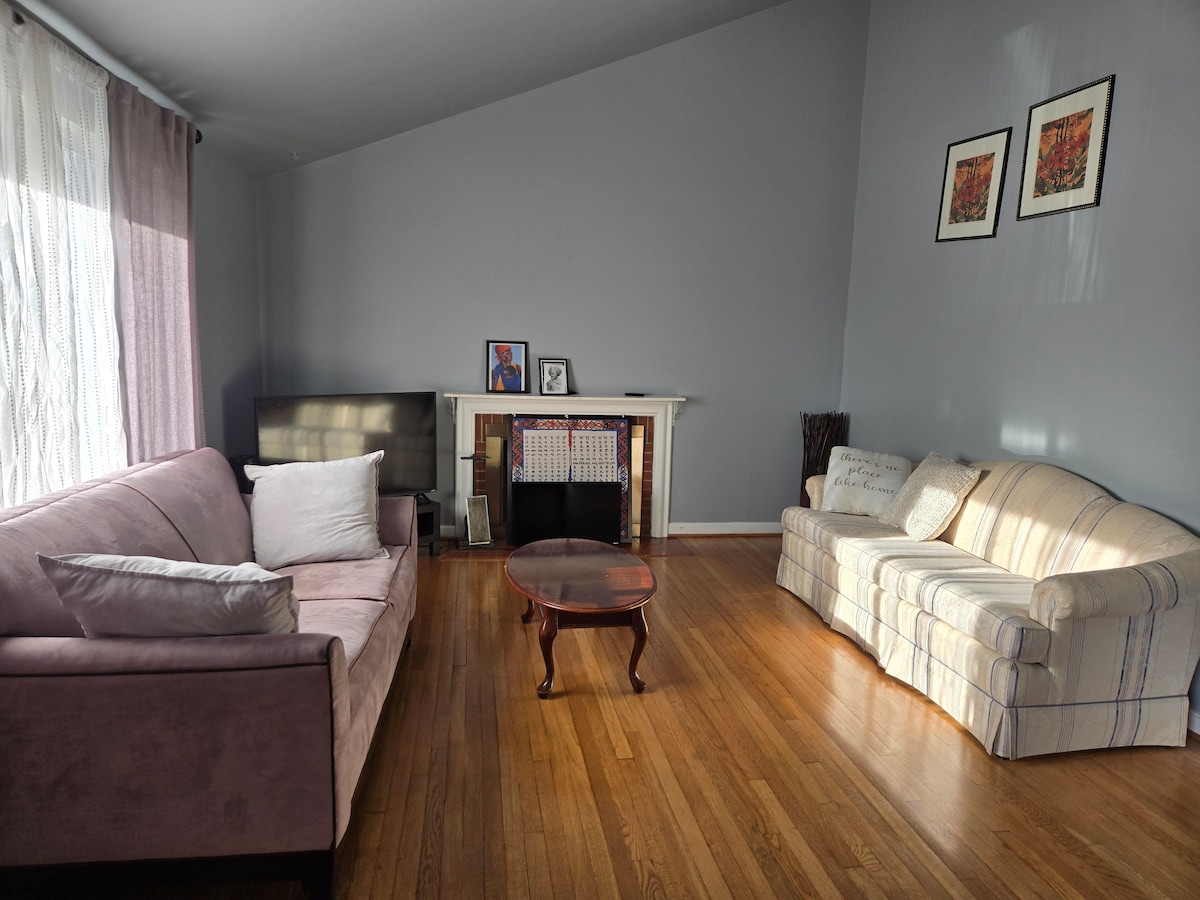 Acogedor, limpio y cómodo apartamento estudio en el sótano en el barrio de 16th Street Heights de Washington DC. A solo 5 minutos en coche o a 15 minutos en autobús del centro de DC. El apartamento tiene una cama tamaño queen, sofá, baño, internet y TV equipada con Netflix y Hulu. Además de una pequeña cocina con microondas, cafetera Keurig y estufa. Se proporcionan artículos sencillos para el desayuno, como barras de granola y café/té. Perfecto para una persona soltera o una pareja, con entrada independiente para garantizar la privacidad.