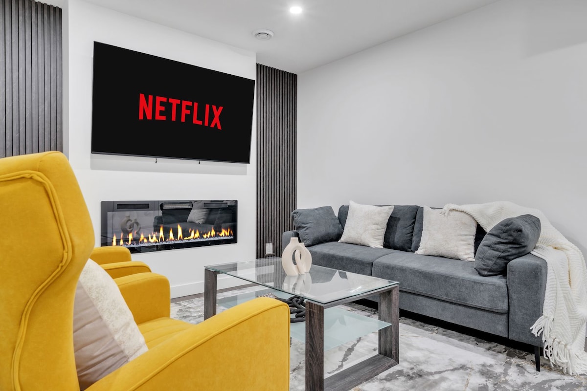 ¡Te damos la bienvenida a nuestra elegante suite de 2 dormitorios en el sótano, donde la comodidad se encuentra con el entretenimiento! Ubicado en un vecindario vibrante, nuestro moderno refugio cuenta con dos acogedoras habitaciones, cada una con lujosa ropa de cama para una noche de sueño reparador. ¿Necesitás más espacio? No te preocupes, tenemos un sofá adicional para que se queden más huéspedes. • AEROPUERTO YYC A 7 MINUTOS. • CTRAIN A 5 MINUTOS. • CENTRO COMERCIAL CROSSIRON A 12 MINUTOS. • A 20 MINUTOS DEL CENTRO DE LA CIUDAD. • A 90 MINUTOS DE BANFF.
