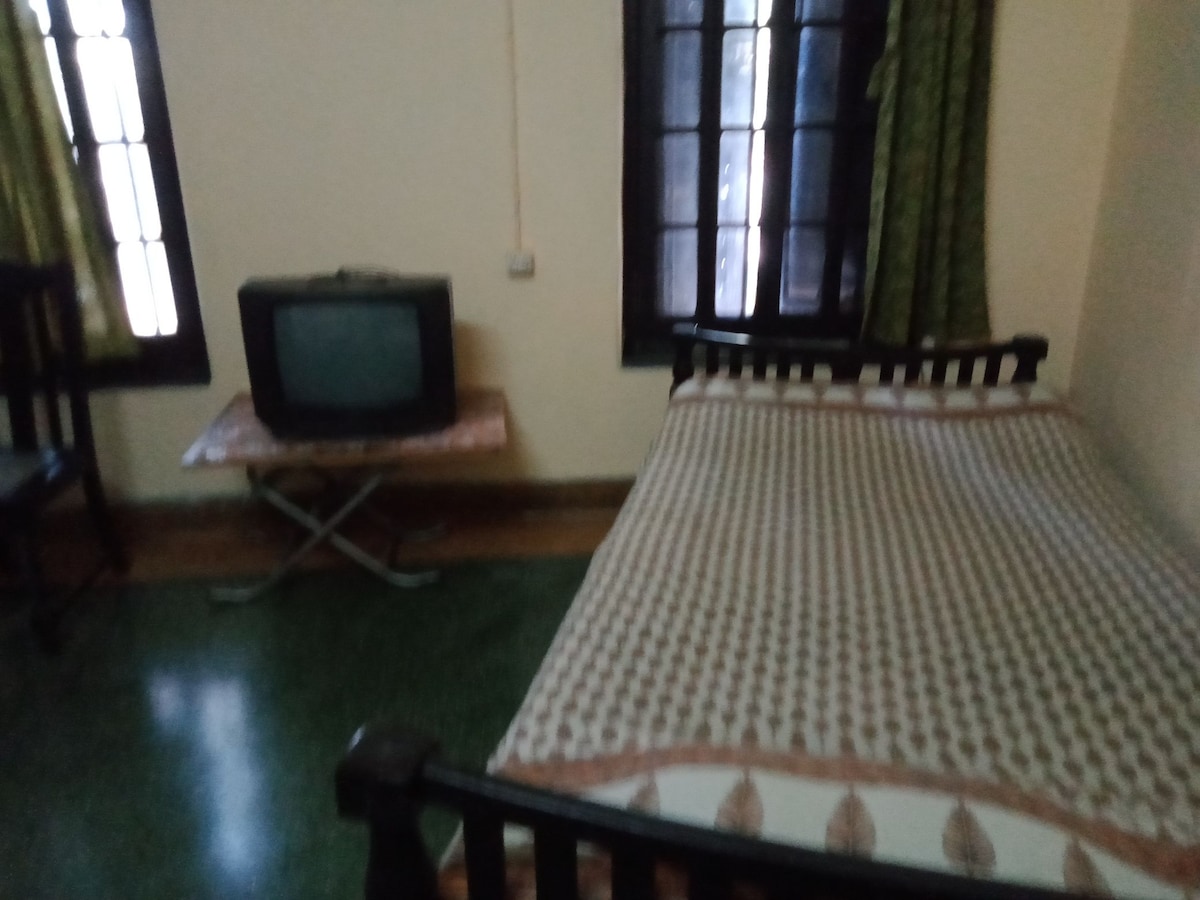 Disfruta del encanto de alojarte en una casa de familia de lujo, junto a la cafetería y pizzería de la azotea más relajada de Bongaigaon, la pizzería de leña más antigua de Assam. La habitación recientemente renovada con aire acondicionado, con una cama tamaño queen y una cama individual separada, puede alojar cómodamente a 3 adultos. Cocina funcional privada. Baño privado. Comida (desayuno, almuerzo, cena) disponible en reserva, aparte del menú estándar de la cafetería. Motos de alquiler en el garaje de abajo.
