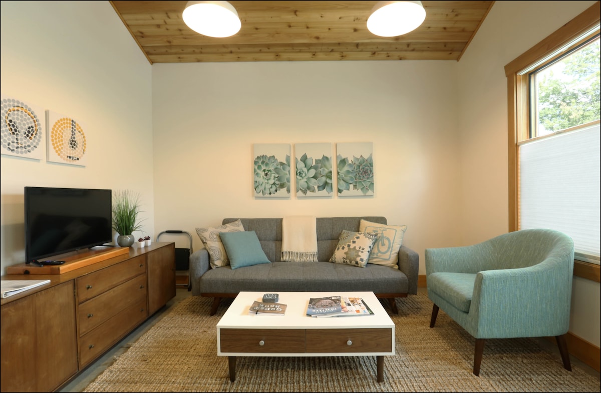 ¡Te damos la bienvenida a Juniper House! Diseñamos nuestra casa de huéspedes en el patio trasero para que fuera un loft luminoso y acogedor, lleno de luz solar, madera expuesta, muebles de buen gusto y acabados coloridos. Disfruta de un espacio privado de 600 pies cuadrados con un patio al aire libre en un barrio tranquilo y cercano a Portland, a pocas manzanas del tren ligero y a poca distancia a pie de una amplia variedad de excelentes restaurantes y abrevaderos. Perfecta para parejas y estancias largas.