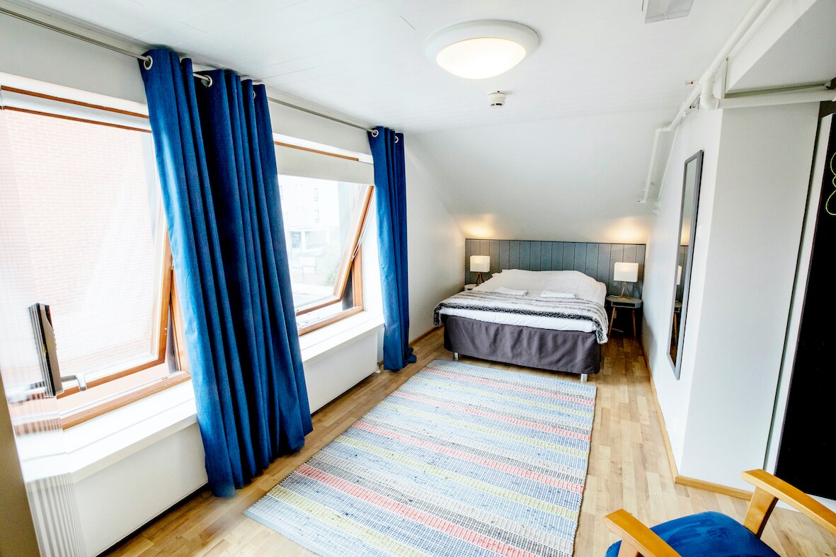 Una habitación para dos con un baño compartido que se encuentra justo al lado de la habitación. Un televisor en la habitación, así como un refrigerador privado. Una habitación en un hotel situado en el centro de Kemi, cerca del río. El hotel tiene una amplia terraza, saunas de uso gratuito, una amplia cocina e incluso una mesa de billar. Si no puedes llegar a la tienda de al lado, también puedes utilizar el dispensador de aperitivos de la casa. Wlan gratuito en todas las habitaciones. Puedes registrarte en el hotel con los códigos las 24 horas, para que puedas venir a nosotros en cualquier momento.