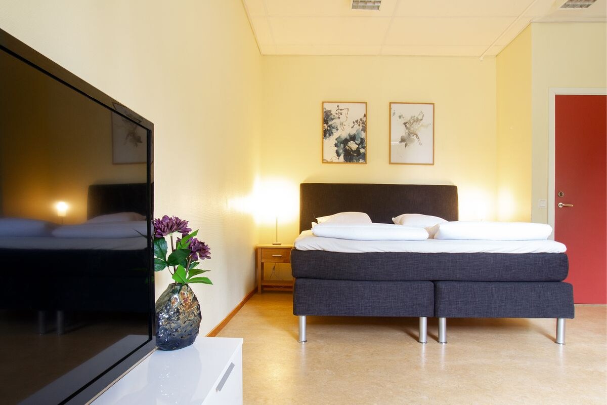 Una habitación doble asequible con un baño compartido ubicada cerca de la puerta. La habitación tiene su propia nevera y TV. Una habitación en un hotel situado en el centro de Kemi, cerca de la orilla del río. El hotel tiene una amplia terraza, saunas de uso gratuito, una amplia cocina e incluso una mesa de billar. Si no tienes tiempo para ir a la tienda de al lado, también puedes usar la máquina de aperitivos interna. Wi-Fi gratuito en todas las habitaciones. Puedes iniciar sesión en el hotel con los códigos las 24 horas, así que puedes venir a nosotros en cualquier momento.