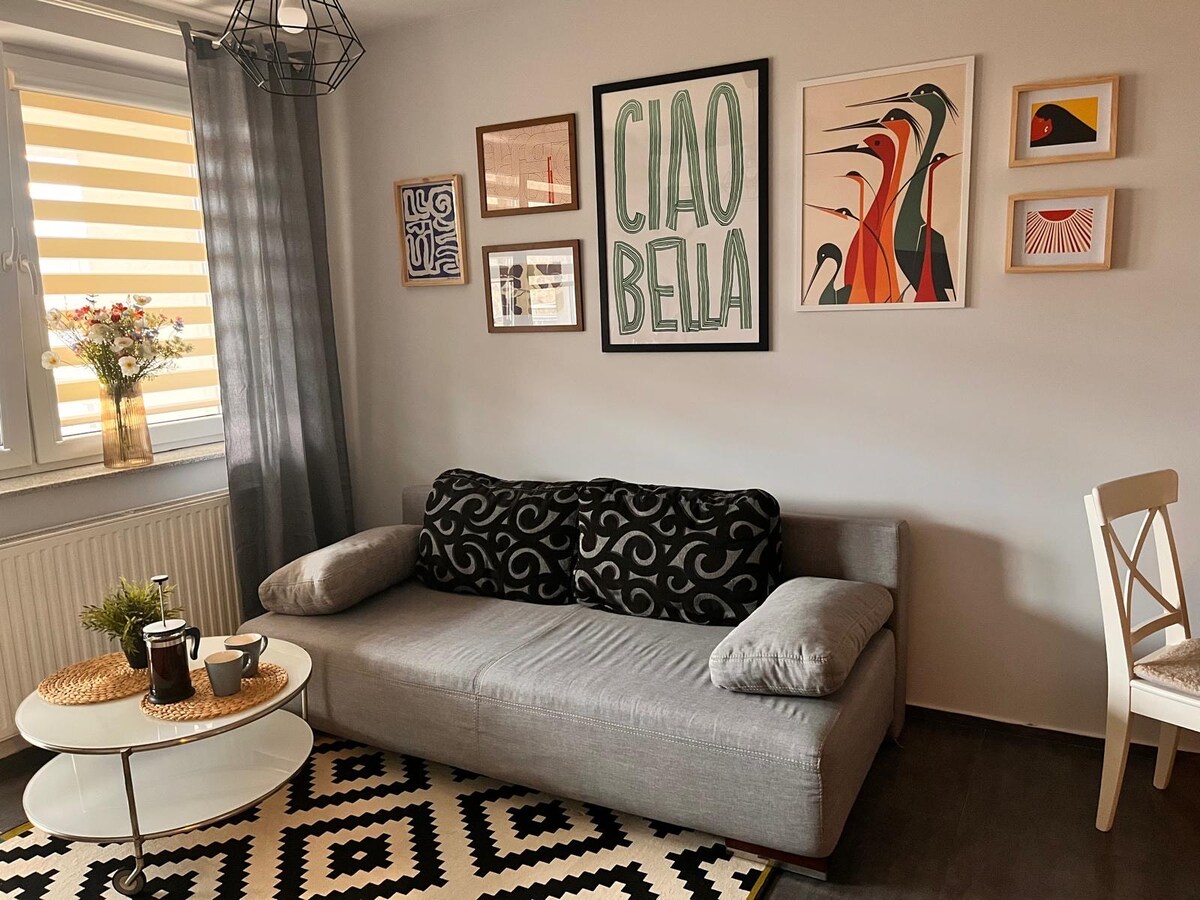 Un lugar elegante para alojarse en el centro de Nowa Huta. El apartamento consta de un salón con cocina, un dormitorio y un baño. La superficie total es de 32 m2. Perfecto para parejas o familias. El apartamento se encuentra a 10 m de la plaza central Ronald Reagan. Un lugar ideal para comenzar un viaje por la ruta comunista. En las inmediaciones hay tranvías y autobuses diurnos y nocturnos, a 25 minutos del centro de Cracovia. Hay numerosas zonas recreativas cerca del edificio.