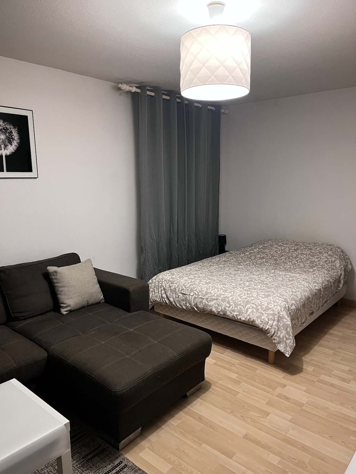 Grand F1 de 30 m2 dans une résidence privée au calme qui se situe au premier étage (sans ascenseur ) .Vous trouverez des places disponibles au sein de la résidence ou dans la rue (gratuit). Il est idéal pour couple, voyageur en solo ou voyageurs d'affaires. Un canapé convertible pour deux personnes en plus ( il faut retenir qu’il n’a pas le même confort qu’un vrai lit) Le logement est facilement accessible, bus tram et autoroute à proximité . Le marché de Noël a 20-25minutes en tram en direct