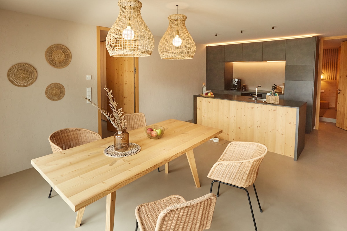 4Monkeys Apartments - Suite Chimpsuite: Hemos utilizado casi exclusivamente materiales naturales como la madera y la piedra. Como arquitecto, el padre de Toni pudo cumplir casi todos nuestros deseos y, junto con las empresas constructoras de Vorarlberg, hicimos realidad nuestro sueño de una casa de madera purista en las montañas.