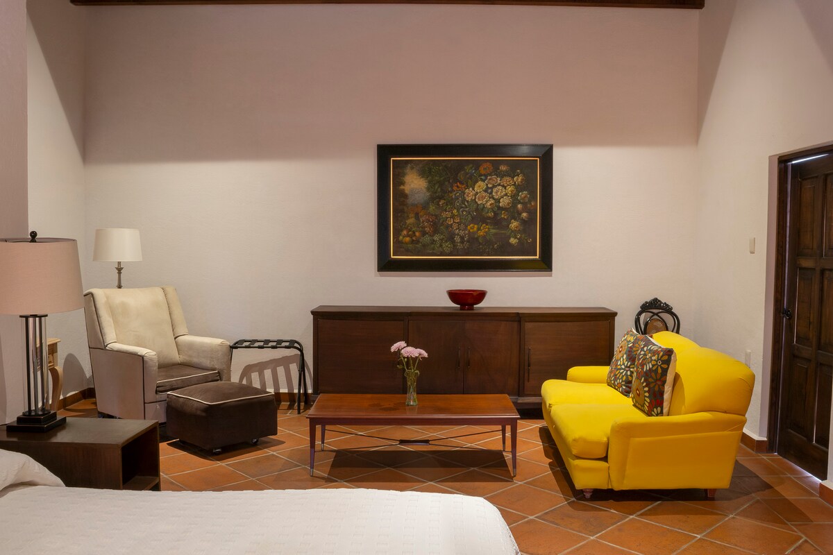 Suite comfortable en la Quinta Cielo, con una gran cama King Size, baño con tina para un descanso total, inmejorables vistas desde su balcón, privacidad total, un cuarto con un estilo unico combinando elegancia con un toque de ambiente de campo. La quinta cuenta con alberca climatizada, jardines que te quitaran el aliento, una ubicación privilegiada, que te permite caminar hacia el centro. Desayuno incluido con frutas y café de la huerta.