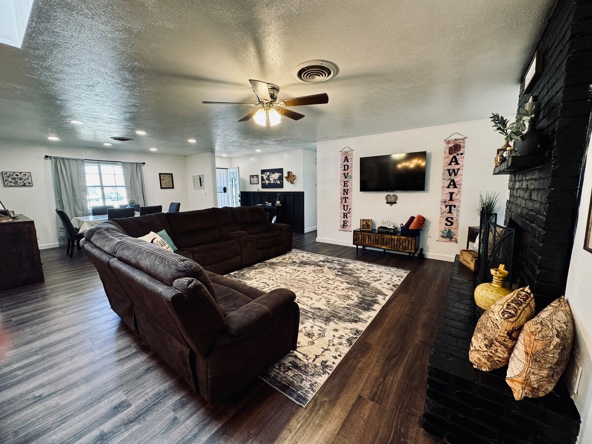 Perfect West Texas Getaway Awaits! Gather your people in this spacious 6-bedroom, 2-bath retreat designed for comfort, fun, and unforgettable memories. Wake up refreshed in one of the cozy beds (1 King, 1 Queen, 4 Full) - plenty of space for everyone. Brew a fresh cup of coffee and step into a home that has everything you need: a fully equipped kitchen,a propane grill for backyard BBQs, and a game room packed with entertainment. A Pool table,a hockey & tennis table comfortable sofa, smart TV.