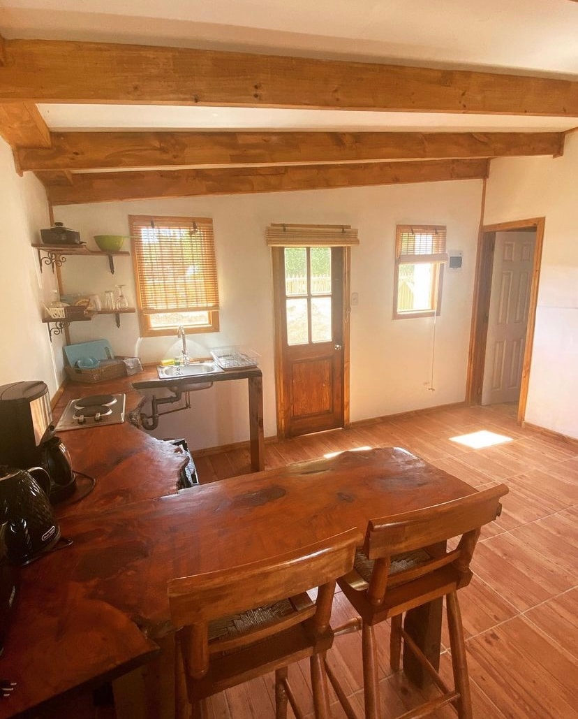 Disfruta la tranquilidad de Punta de Lobos en este acogedor loft con estilo de cabaña, ideal para parejas o viajeros que buscan desconectarse en un entorno natural. El espacio cuenta con un ambiente abierto que integra dormitorio, cocina totalmente equipada y un baño privado. Desde la terraza podrás disfrutar de una hermosa vista al mar y del entorno amplio y silencioso que caracteriza la zona. Perfecto para descansar, relajarte y vivir la esencia de Pichilemu a pocos minutos de la playa.