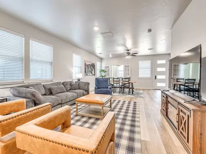 Diseñado con texturas naturales, tonos tierra y mucha luz natural para garantizar un ambiente acogedor y tranquilo que no querrás dejar. La suite principal doble con 2 camas tamaño queen y 2 baños privados hace que sea perfecta para 2 parejas, familias, profesionales o cualquier persona que quiera alojarse en el corazón de Oklahoma City y seguir teniendo una experiencia local. PLAZA es el mejor distrito de arte de Oklahoma City y está a solo 3 manzanas a pie de deliciosa comida, arte callejero de clase mundial, café, tiendas locales, festivales, música en vivo y mucho más. ¡El centro de Oklahoma City está a 5 minutos en coche!