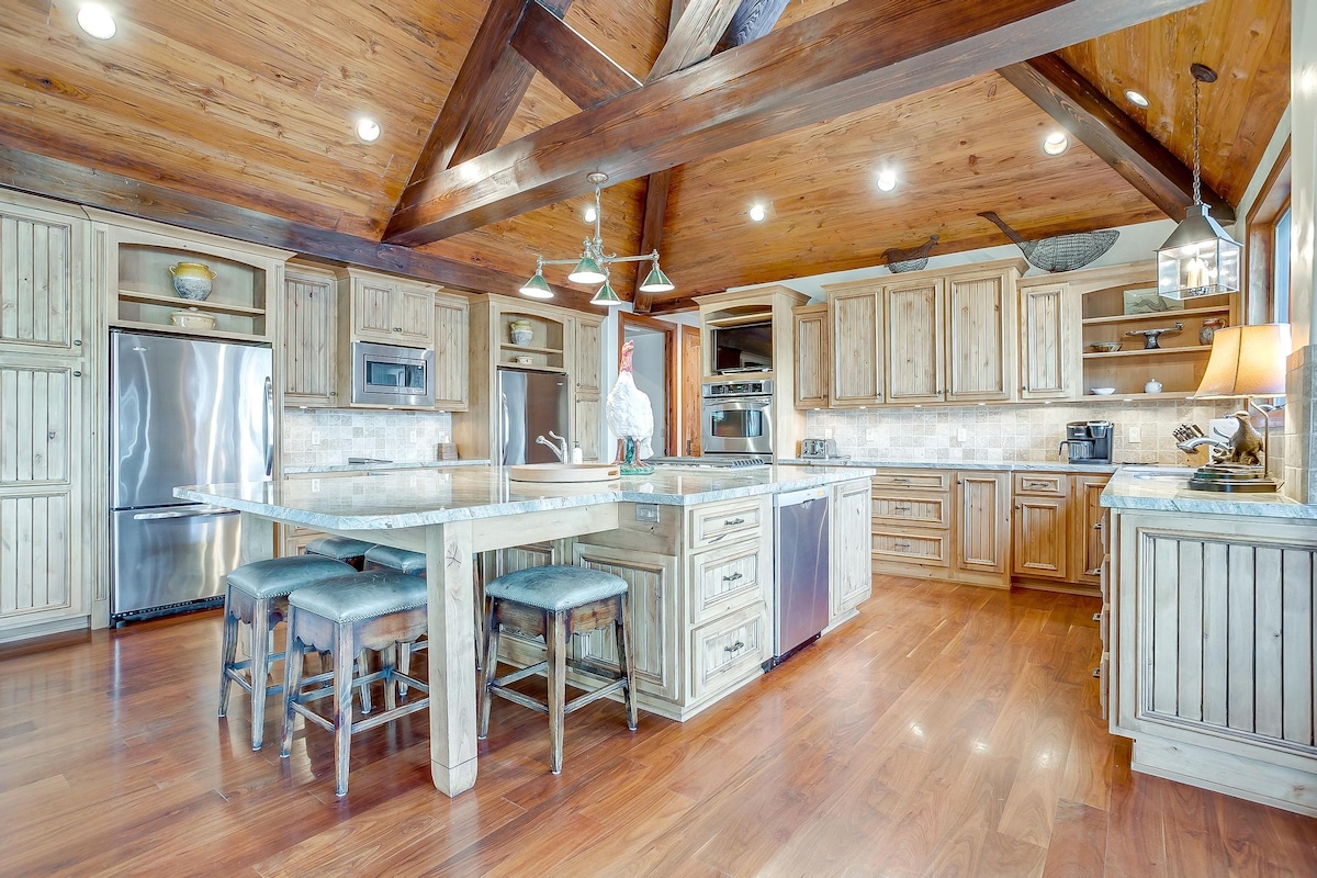 Aléjate del ajetreo y el bullicio cuando te quedes en esta cabaña rústica de 3 dormitorios, muy privada, pero a un corto viaje de las tiendas y restaurantes de la zona. Disfruta de las vistas y los sonidos de la naturaleza, con todas las comodidades de casa a tu alcance. Relajate bajo las estrellas y olvidate de tus problemas en el jacuzzi. (La piscina profunda está CERRADA por la temporada) Se admiten mascotas con el pago de la tarifa de $150 por mascota. El precio del anuncio es para 5 huéspedes. Se aplica una tarifa de $25 por huésped adicional por noche.